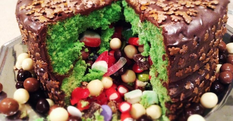 - Rellena los agujeros con un contenido especial ( cuches, M&m’s, conguitos etc.) Te puede quedar como una montaña y así al cerrarlo, el hueco de la parte superior quedará relleno.