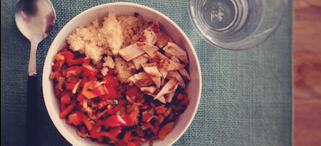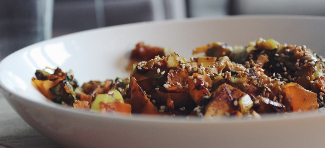 - Colocar en una fuente de horno una cama de rodajas de patata, otra de tomates cortados por la mitad y por ultimo la cebolla. Hornear 30 minutos con un chorrito de aceite de oliva y vino blanco (la idea es impregnar todas las verduritas).